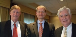(Above, he is in the center with chamber CEO Peter Crowley, left, and Grant Somerville of Merrill Lynch, right.)