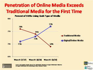 2. "But don’t toll the bells for traditional media just yet, because digital media is getting just six percent of the local marketing dollars…" Yes, this is good news for traditional media. However, since "online media usage penetration exceeded usage of traditional media" then the majority of companies spending money on using the traditional channels are in fact out of touch with the reality of the market. Traditional media is surviving on nothing but forward momentum. The question is, how long will that luck last?