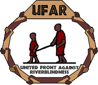 Some of the best cooks I know are preparing delectable African food, tons of it, all different kinds. We’ll be eating and feasting, eating and feasting and dancing. And all of this for a good cause, to stamp out riverblindness, a neglected tropical disease that starts with a rash and ends with sight loss. More than 23 million people in the Democratic Republic of Congo are at risk for it, and when the adult goes blind, a child must leave school. The logo for UFAR, above, shows a child leading an adult by a stick. A very sad situation, but a very good reason to party.