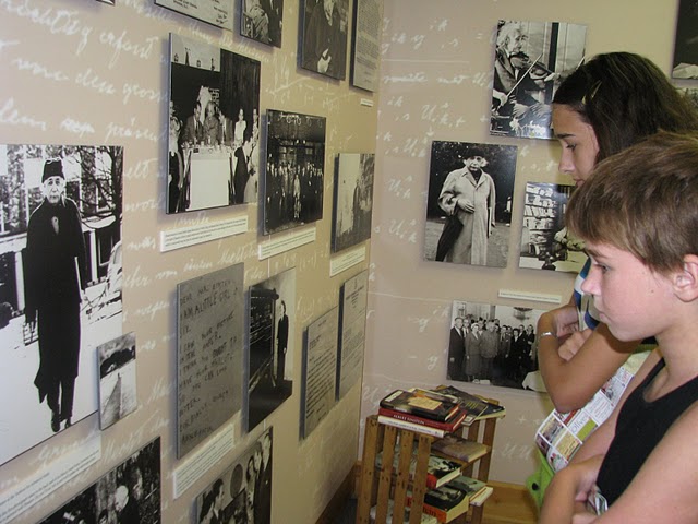 I checked out what Nickell said about Princeton. I’ve read, written about, and gone on many Princeton walking tours, but was delighted to find some new information on, for instance, the Joseph Henry House (the yellow house that belonged to the famous physicist is close to Nassau Street) and Henry’s artifacts in the Jadwin physics building display (including the first battery brought to America). Nickell points visitors to Landau’s mini-museum on Einstein (to which I brought my granddaughters, pictured) and to the scientific luminaries in Princeton cemetery, as well as to the more obvious choices.