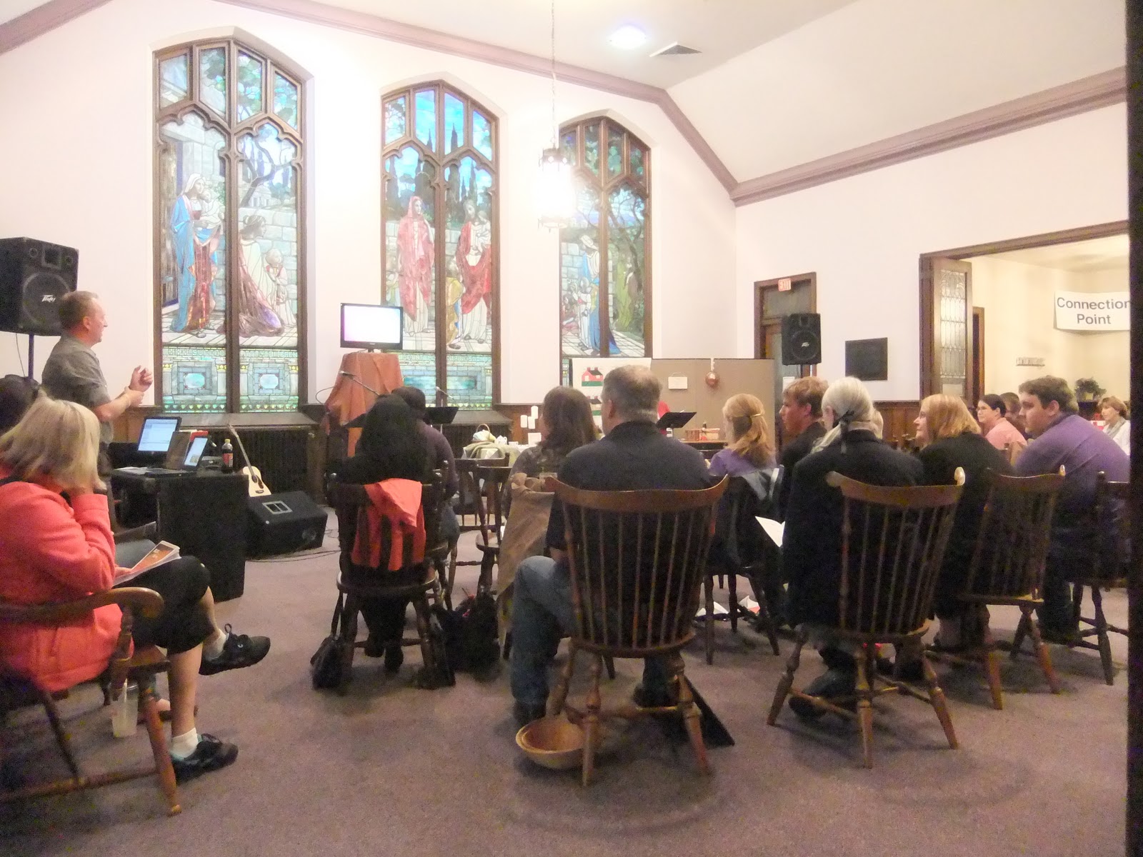 If you hear music as you stroll down Nassau Street at about 5 p.m. today, it’s coming from Princeton United Methodist Church, at the corner of Nassau and Vandeventer. The church has launched a series of Saturday Evening Worship Gatherings, non-traditional services in the Sanford Davis Room (pictured left) and the door opens onto Nassau Street.