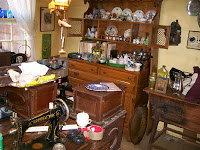 I just came back from the first day of the sale — it was stand-in-line-only, for an hour, in order to get in the house. But from here on, you will be able to get in. I came away with a magnifying glass on a gooseneck stand, a Terrible Towel from the Pittsburgh Steelers, and $40 worth of jet beads for jewelry making. The house is chock full — there is plenty left..