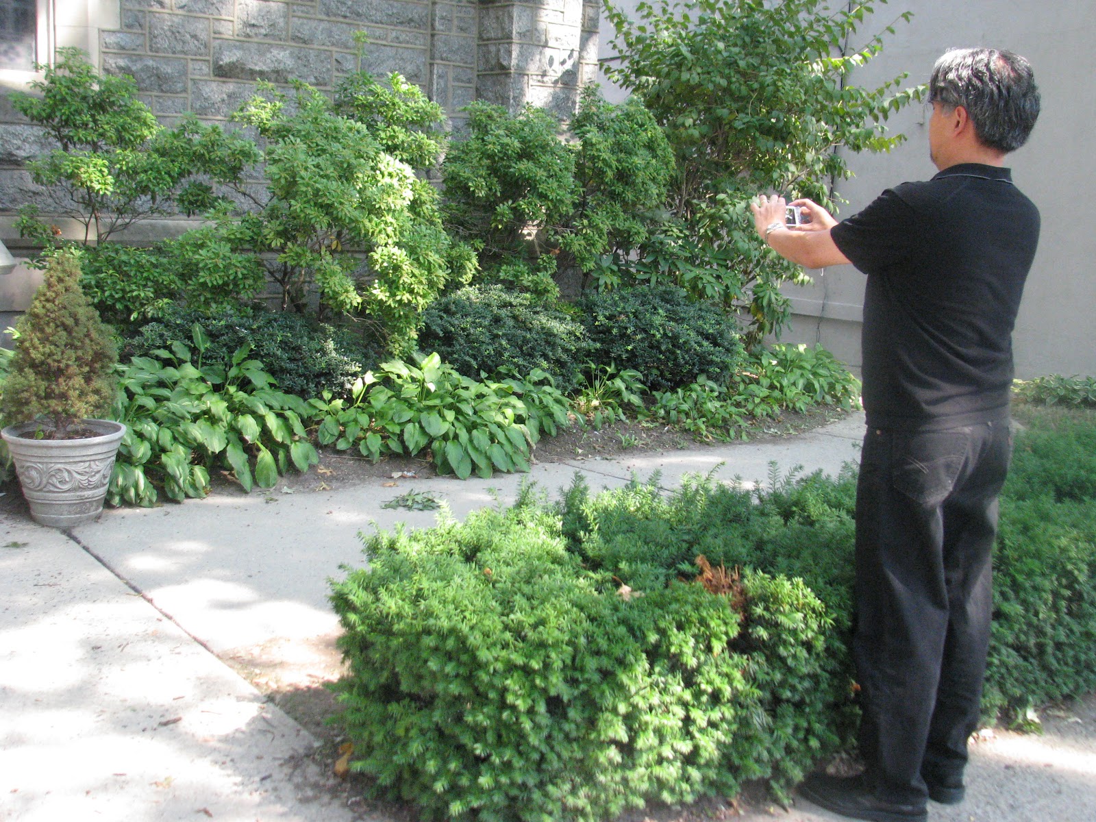 (In the photo on left Raul takes a picture to show where a sign should be posted for one of two wheelchair entrances.)