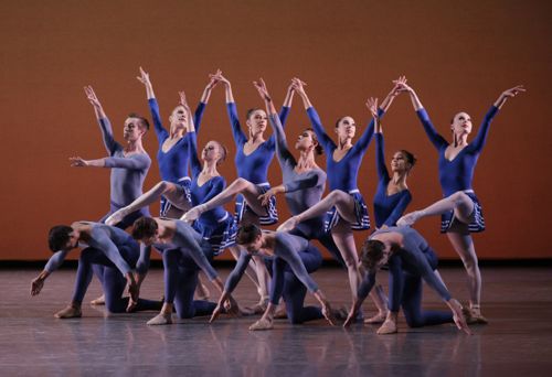 The music feels blissfully like Stravinsky – percussive violins, raspy cellos, shifting meters. It feels comfortingly like Glass, legato phrases repeating and extending. It feels as grounded as Bach, with its plucked counterpoint, and like Bartok with over arching folk-style melodies. Mostly it feels danceable and 25-year-old Justin Peck, a choreographer who is emerging from the ranks of the NYCB corps, mixes just the right combo of whimsy and earnestness for six principals and 12 members of the corps.