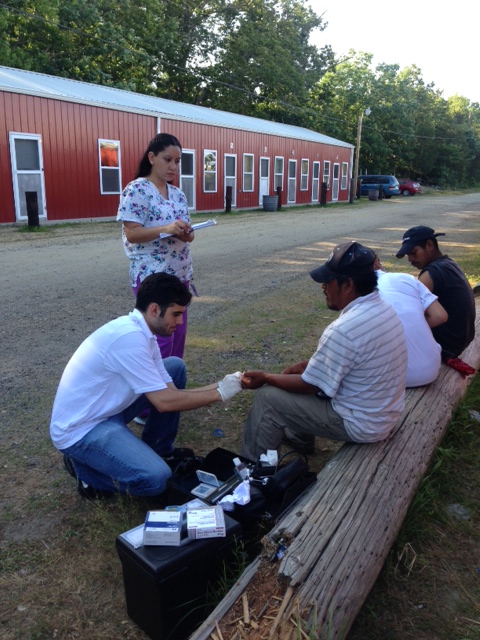 As examples, the photo on the right shows a migrant farm in Hammonton where two students did health screenings with the workers. On the left, volunteering at Elijah’s Kitchen.