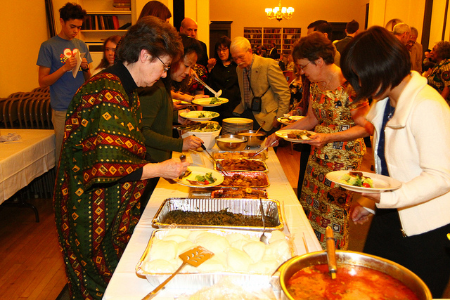 Here, a picture of the bountiful feast — the multi-course home-cooked African and American dinner prepared by volunteers — a major feature of the African Soirée. On Saturday, March 19, it starts 5 p.m.(doors open at 4:30 p.m.) at the Mackay Campus Center of Princeton Theological Seminary, 64 Mercer St. Princeton NJ. Tickets are $70 per adult and $35 per child at www.riverblindness.org. For free parking, enter from College Road.